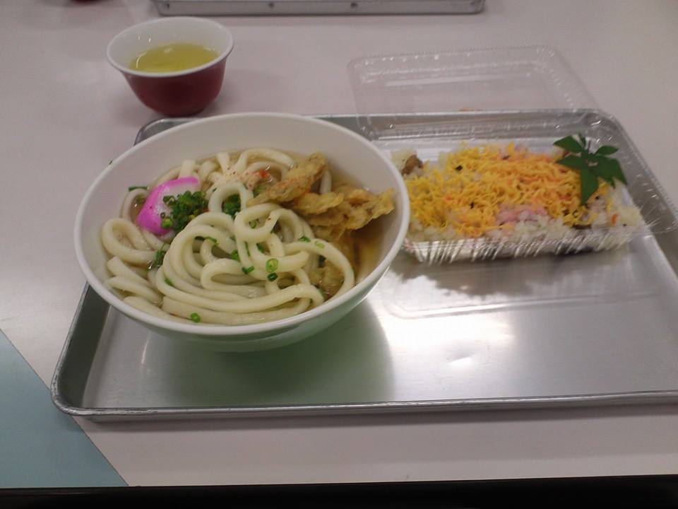 晩ご飯~うどんとちらし寿司、食堂でいただきました。美味しかった♪