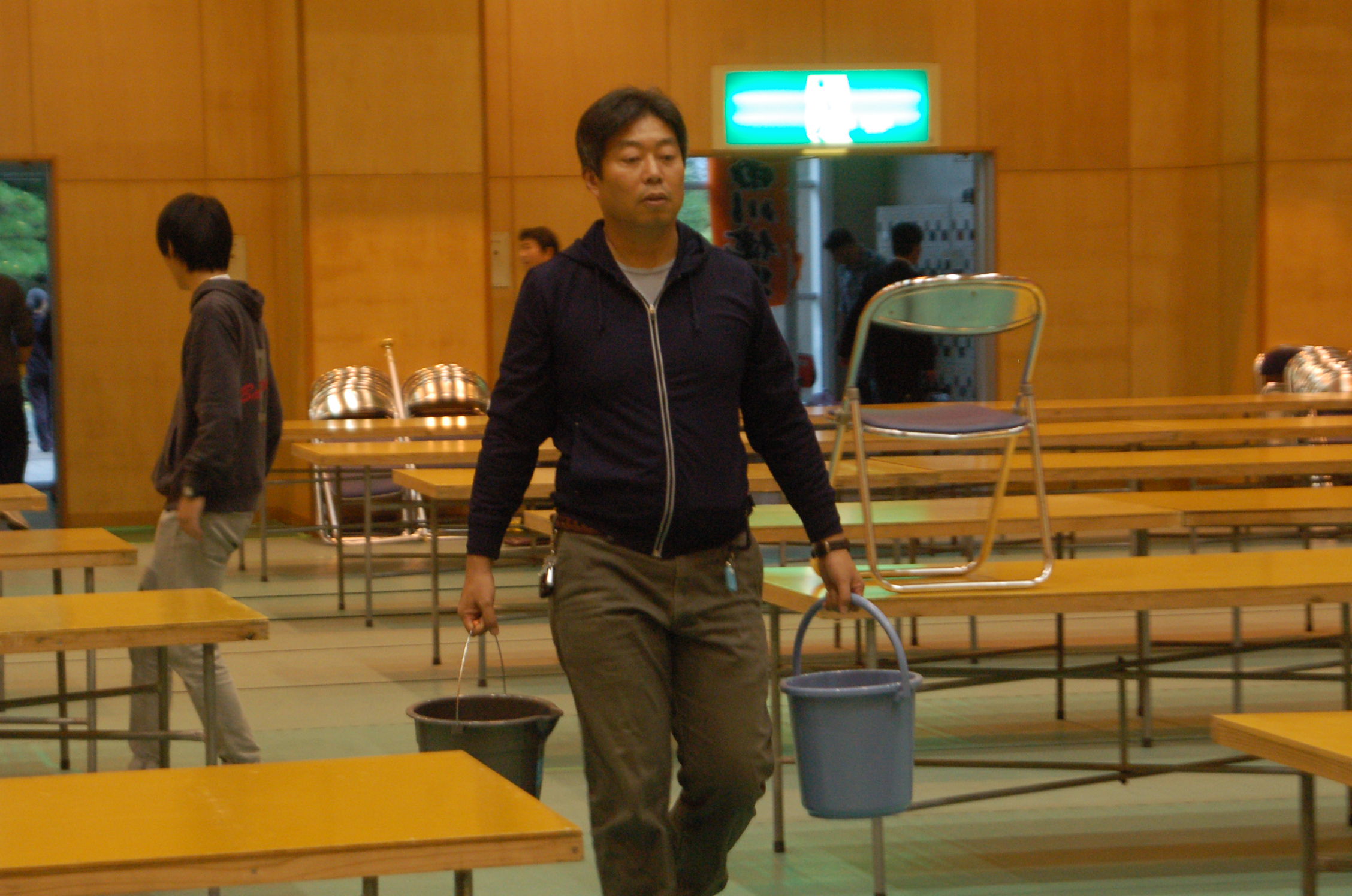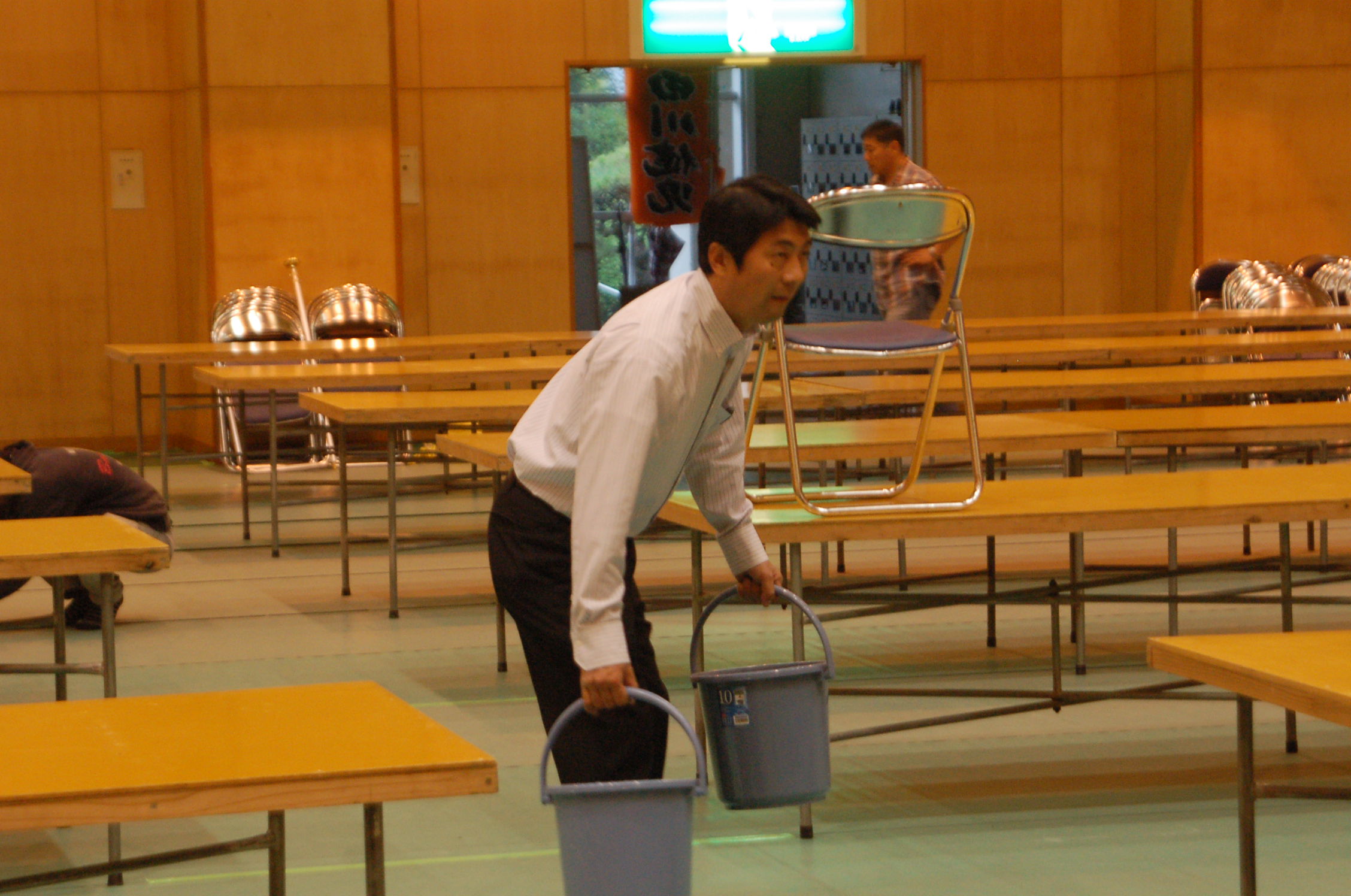 先輩方のお手伝い、椅子を1脚ずつ拭いたりね。結構カビたりしてました。