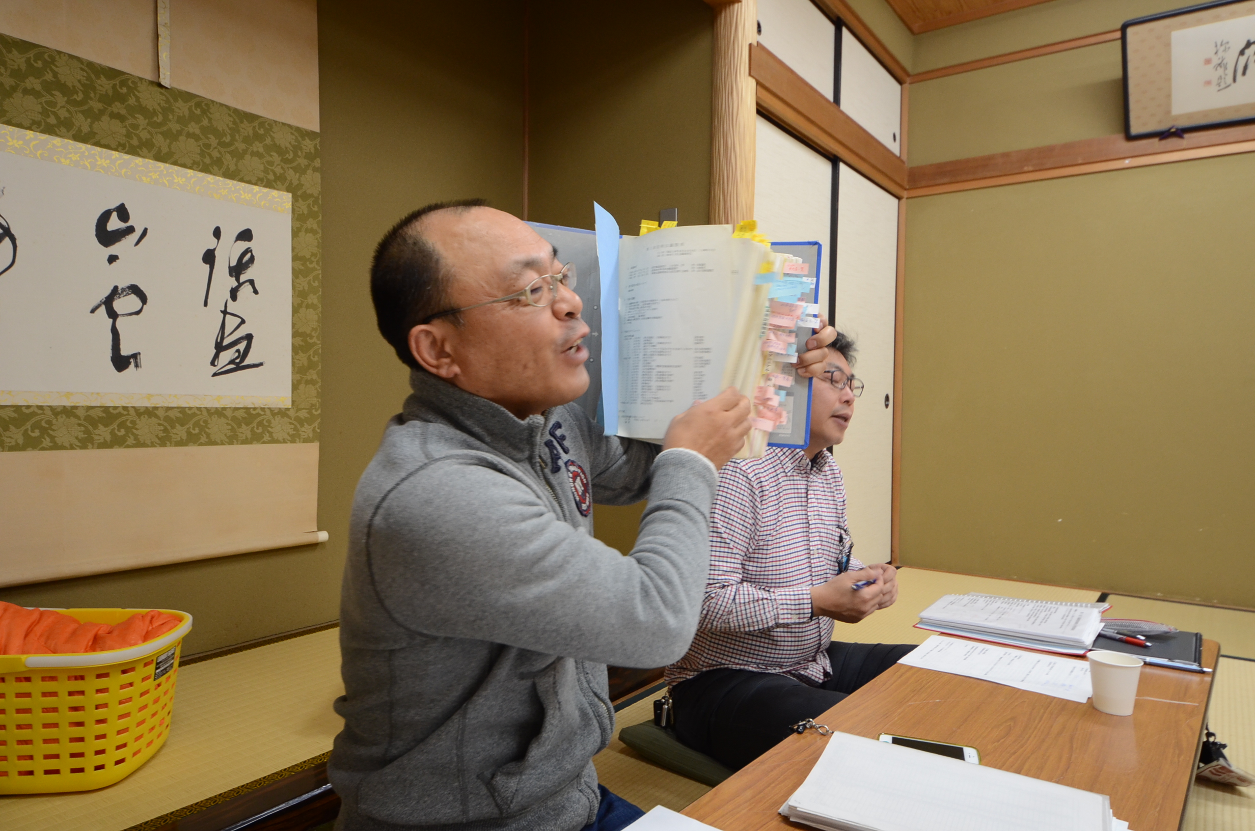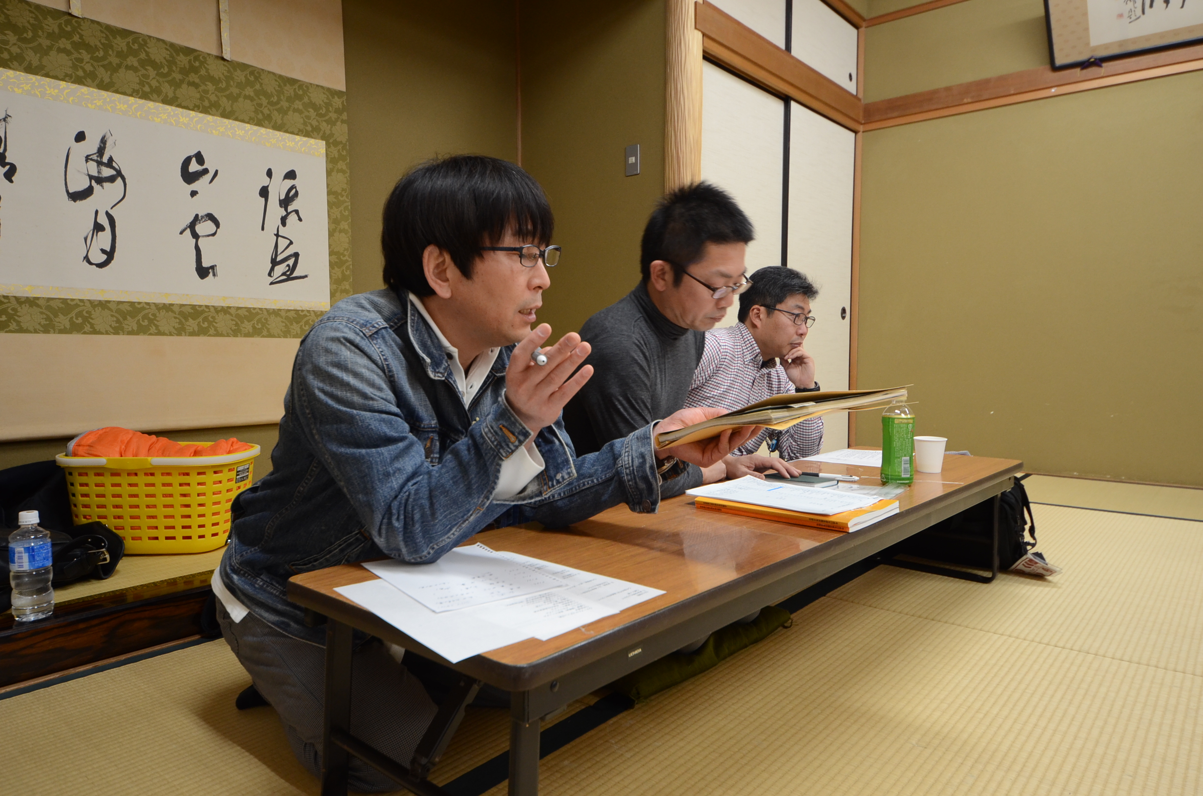 楽しそうに見えますが3人で会議中~