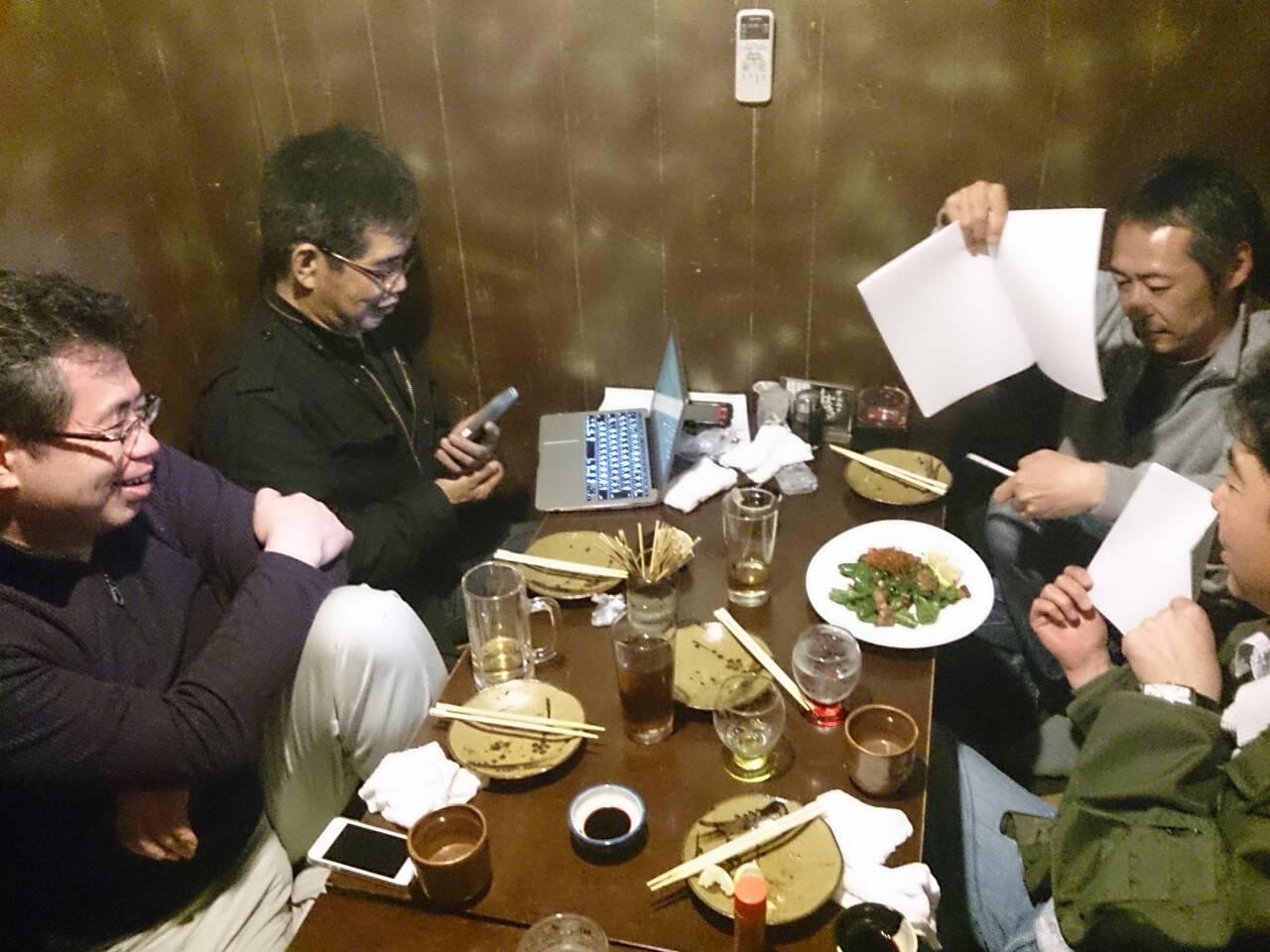 後藤寺の焼き鳥屋 とり啓で行われた空撮委員会の様子です。
