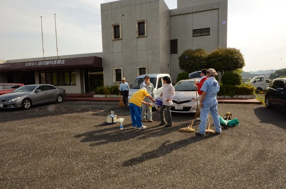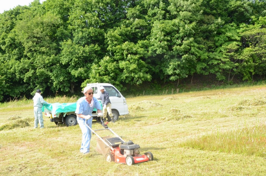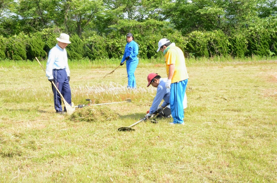 5月17日 へりが着陸する田川歯科医師会のグラウンドの草刈をしました。
