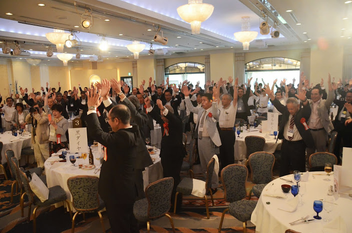 おはようございます。一年ぶりの東京総会に参加してきました。本総会よりも一年早く、昨年度が34回の当番でした。そこで、今年は田川岳陽同窓会総会のアピールが一番の目的です。会場のあちこちで、総会の宣伝と共にファイル販売をみんなでおこないました。それに、プラスして広告取りまでしてくれている34回生もいました(二次会でも広告とりをしていました)。懇親会終盤には、ユニフォーム姿で壇上にみんなで上がって、アピールをしました。毎回思うのは、私たちのユニフォームは本当に格好よくて、目立ちます。会場のみなさんからは、「あなたたち、よくやっているね」「困ったことがあったら、相談に乗るからね」など、暖かい言葉をいただきました。昨日の総会会場や二次会会場での34回生の姿を見たときに、活動真っ盛りの広告取り活動をしている34回生と重なりました。昨日も1日何回も広告委員のみなさんの連絡メールが入りました。例え、知り合いであっても、お金をいただくお願いは、気を遣います。仕事をやっと終えて訪問したら「こんな遅い時刻に来るなんて。」と叱責された、という話も聞きました。この話を聴いたときに、感涙しました。こんな苦労を積み上げながらの広告取りの結果です。今まで、何人もの先輩から「あなたたちが楽しんでやりなさい。みんな自分の生活や仕事が有るんだから。無理はしなさんな。」とアドバイスをいただきました。総会への関わりの形は、さまざまだと思います。しかし、「あの同窓会当番の活動は楽しかったね」と皆が言えるようにしたいですね。実行委員長として、そんな力は有りませんが、皆と一緒に進んでいきたいと再認識した1日でした。