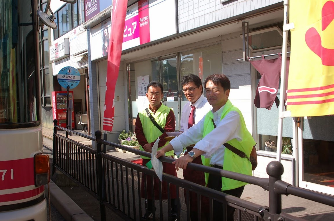 伊田駅前で誘導をする、道端君、森下君、北代君