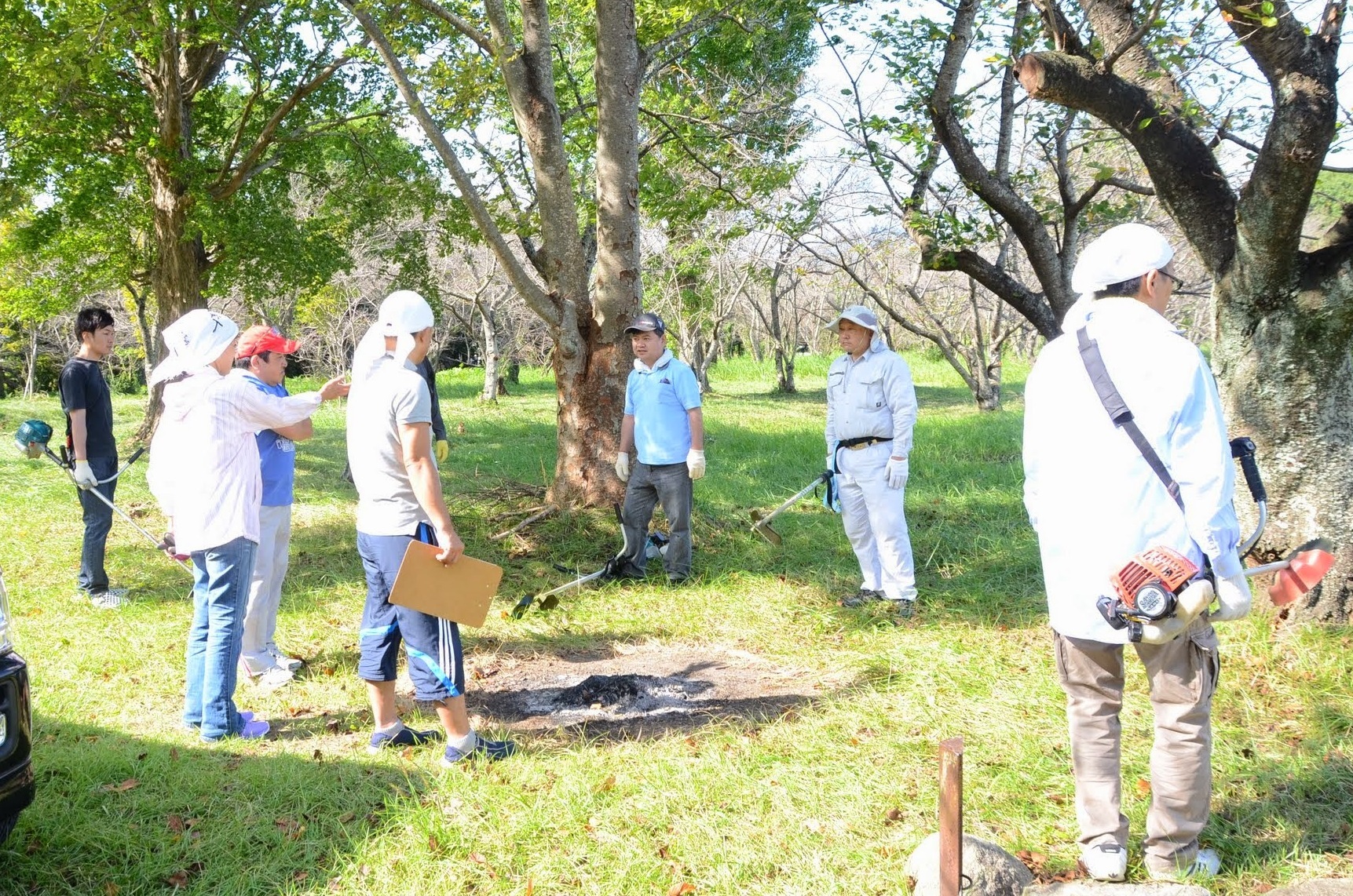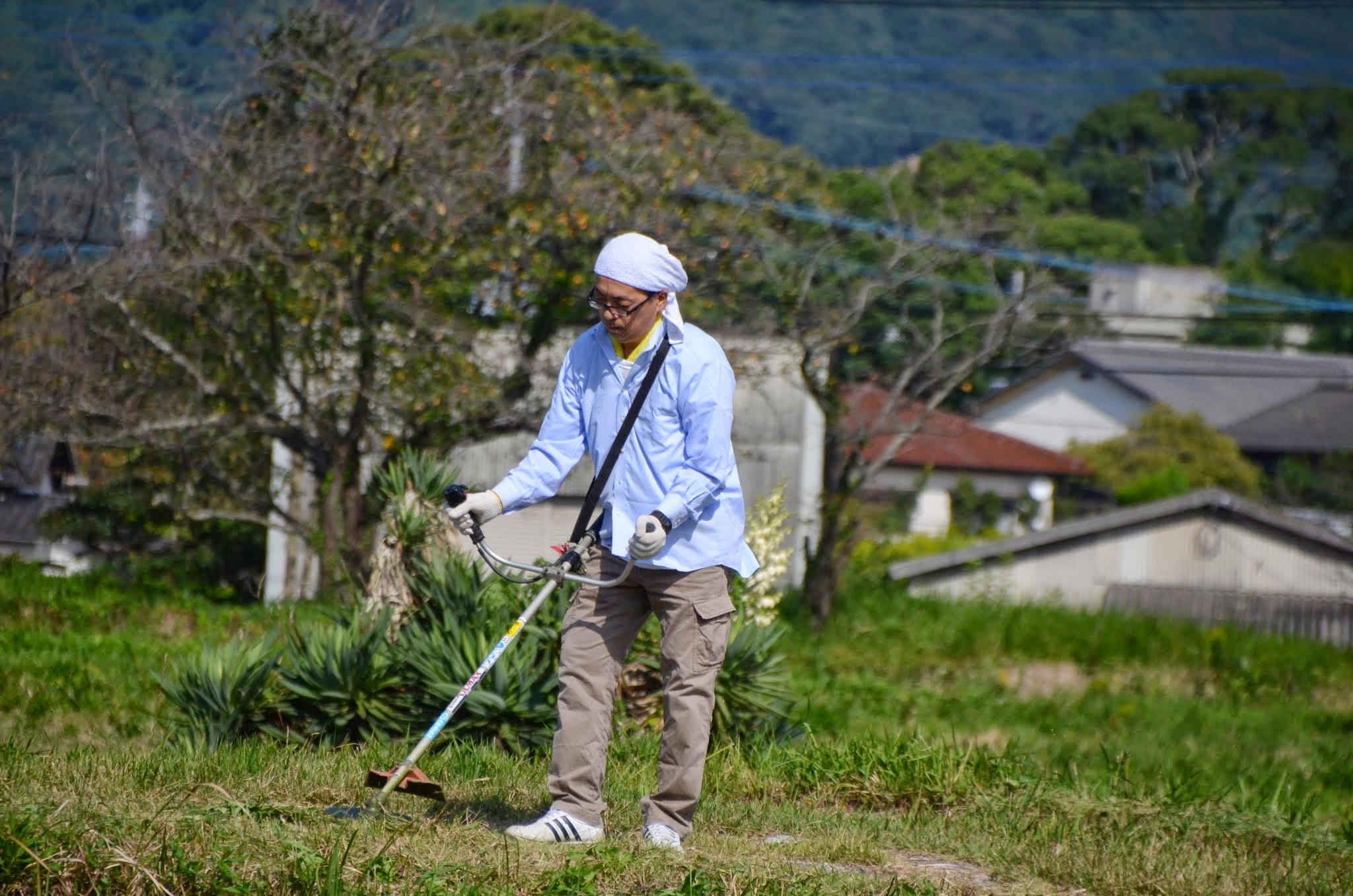 今総会の駐車場は鎮西公園でした。鎮西公園を使わせていただくために草刈りを行います。