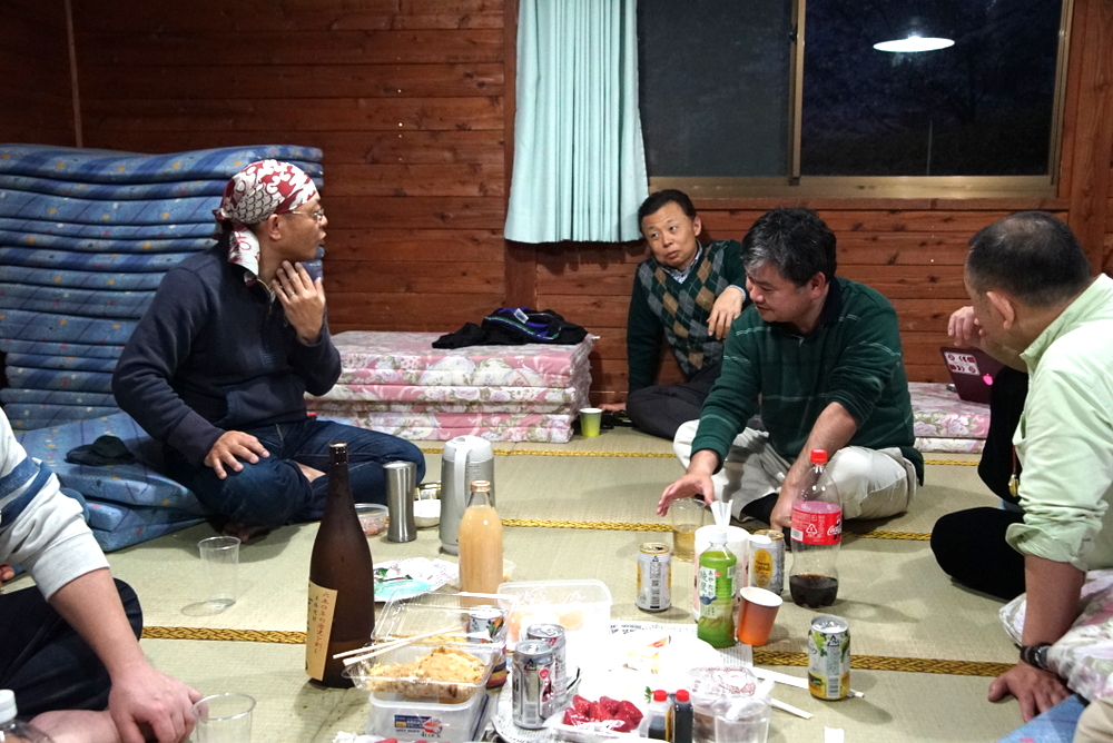 少し暗くなってからは今度はバンガロー内でバカ話に花を咲かせ、実行委員長の松岡Tの悪口で盛り上がりました。