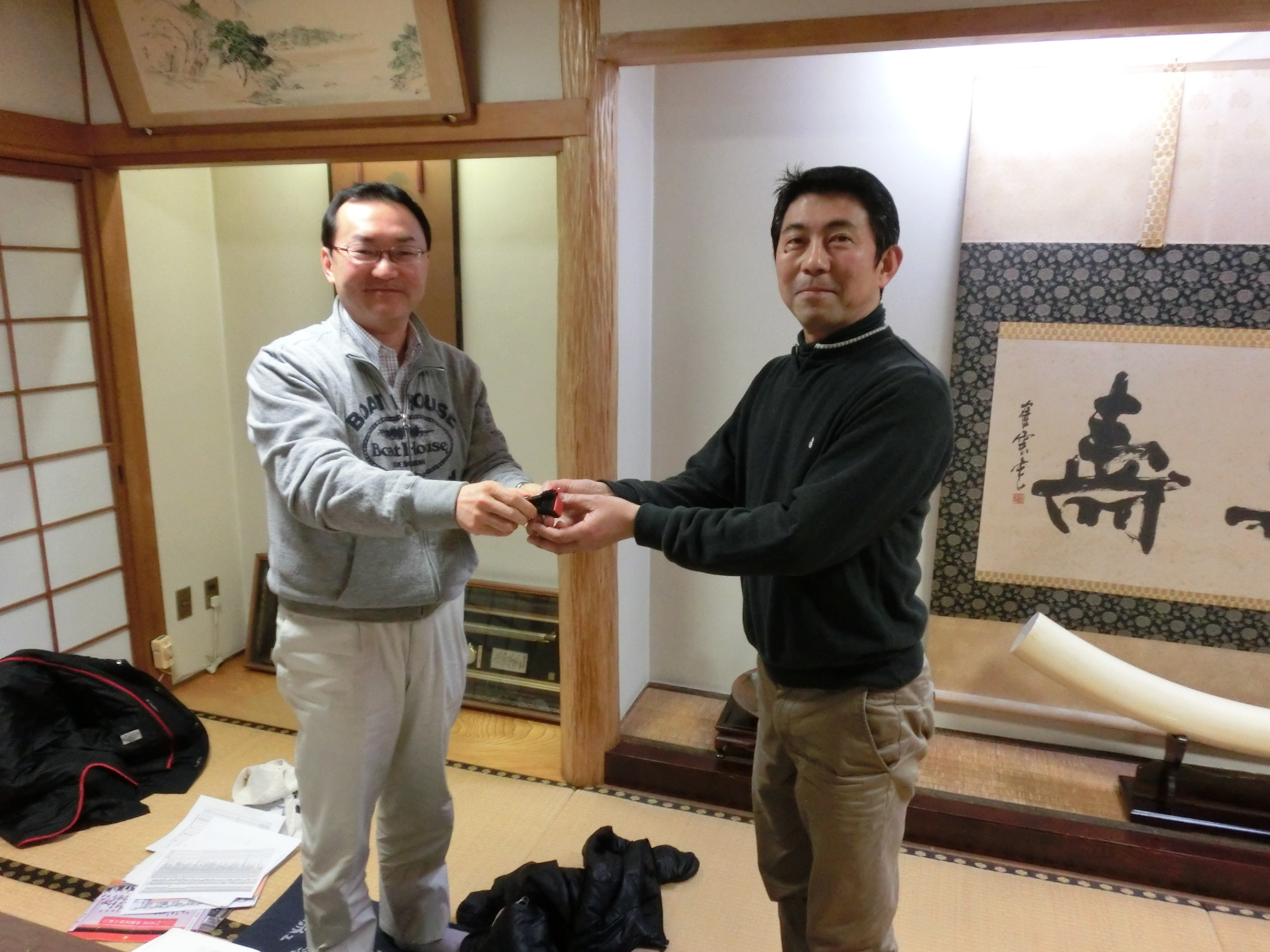 森下君より酒(小川くんの昇進祝い)