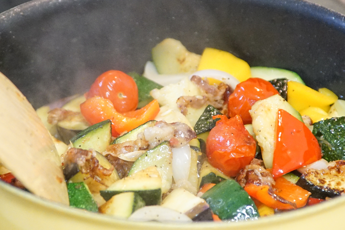 夏野菜を炒めて